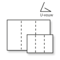 Let op dat er bij deze folder speciale vouwmarges worden gehanteerd. Een folder met U-vouw heeft namelijk altijd een korte flap. Zie onderstaande tekening voor uitleg.
